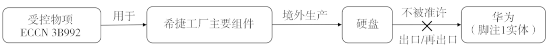 其次是工厂或主要组件条款。相比于直接产品,该项条款进一步扩大了出口管制范围,向更上游领域进行了延伸,旨在确保脚注实体无法获取含有美国特定技术的先进设施所生产的物项。如图10所示,美国希捷的境外工厂主要组件依赖受控物项ECCN 3B992下的技术作为主要生产组件。在这种情况下,即便该工厂所生产的硬盘产品并不直接包含美国技术,但当硬盘出口给脚注1实体华为公司,其出口行为需获BIS许可,否则将违反EAR规定,从而触发连带惩罚。