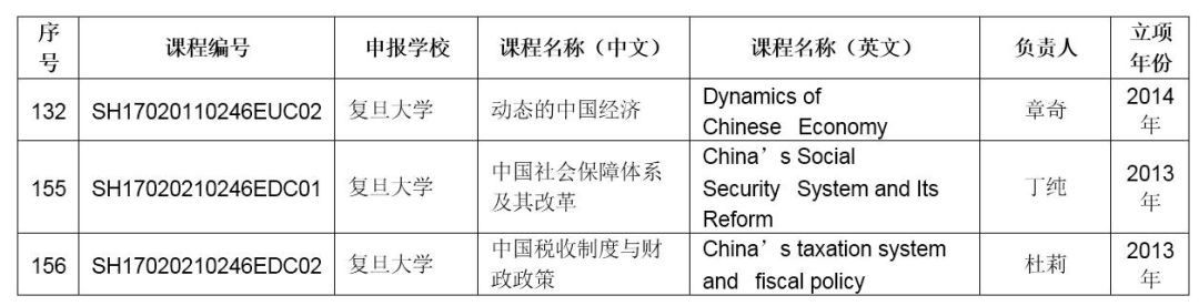 其中,复旦大学经济学院三门课程获批市教委2017上海高校外国留学生英语授课示范性课程,复旦大学中国经济研究中心章奇副教授“动态的中国经济”课程位列其中: