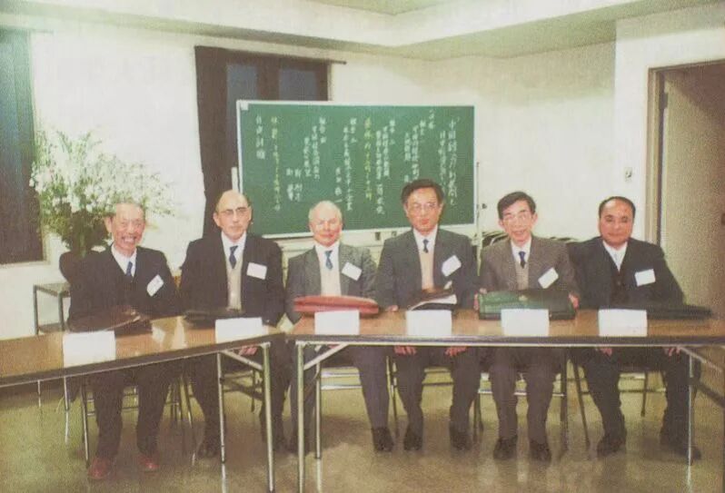 1989复旦经济学院访日代表团参加在日本东洋大学的中国经济形势与发展研讨会。左图左起:张薰华教授、蒋家俊教授、郑励志教授、洪远朋教授、葛霖生教授、叶世昌教授。